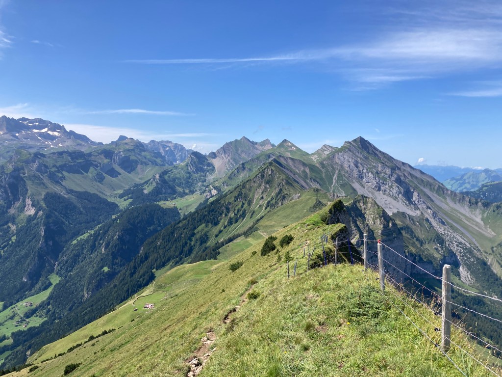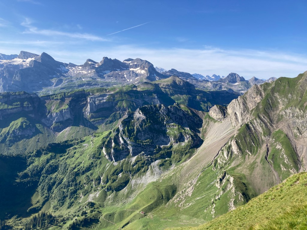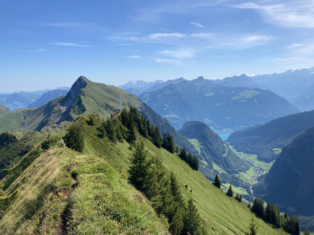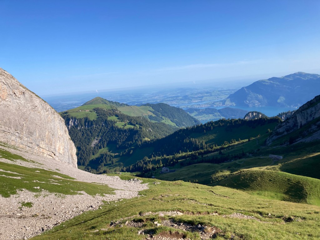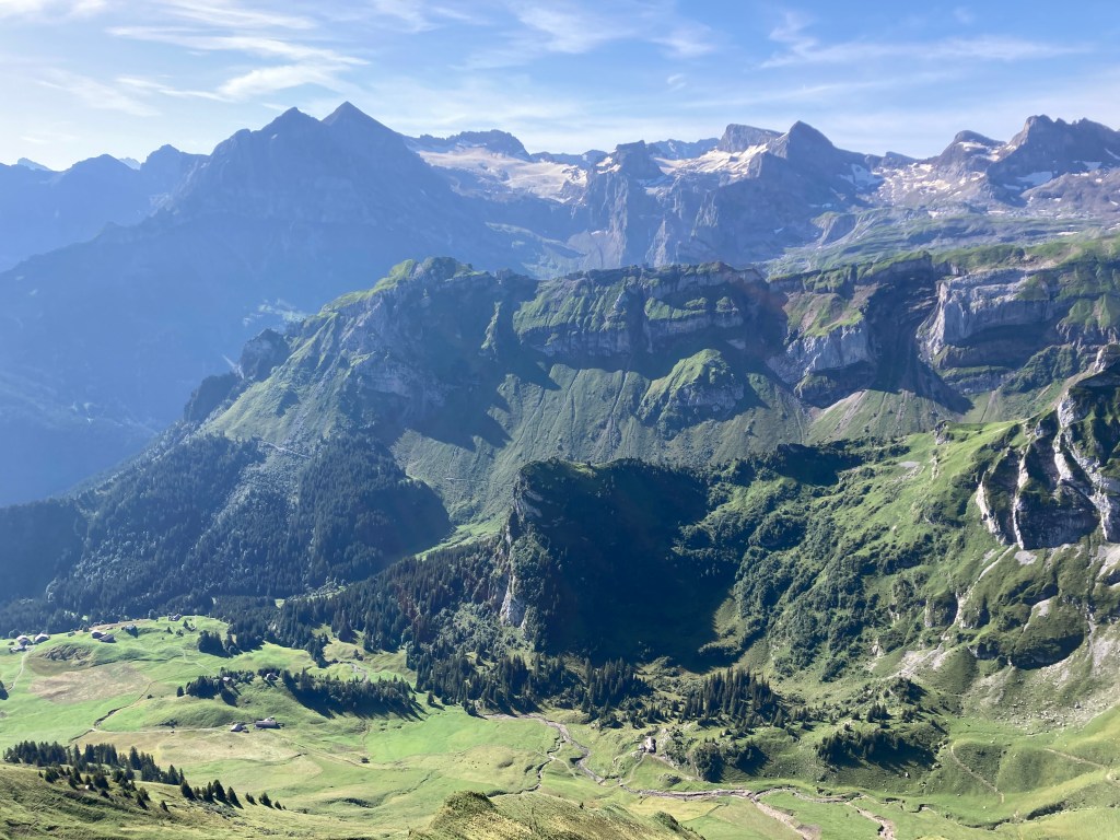 Vom Glattigrat bietet sich ein herrlicher Ausblick: Richtung Norden hinunter zum Brisenhaus, dahinter die Rigi, die Musenalp sowie das Buochserhorn. Richtung Westen der Brisen und der Hohe Brisen, südlich ganz viele (fast) 3000er und östlich der Glattigrat.